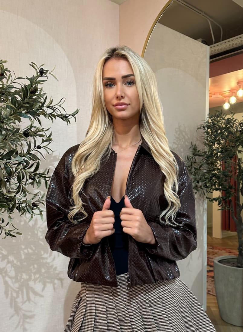Wat dit item direct herkenbaar maakt als een echt EIGHT PARIS ontwerp, is de prachtige leatherlook stof voorzien van een verfijnd ruitreliëf. Deze textuur zorgt voor een luxe diepte in de kleur. Het EIGHT PARIS vest choco is uitgevoerd in een bomber-model, compleet met elastische boorden aan de mouwen en de onderzijde voor een perfecte aansluiting. De robuuste ritssluiting aan de voorzijde en de opstaande kraag geven het vest een sportieve touch, terwijl de rijke bruintint de elegantie bewaart.